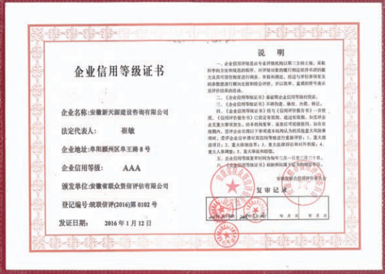 企業(yè)信用等級3A